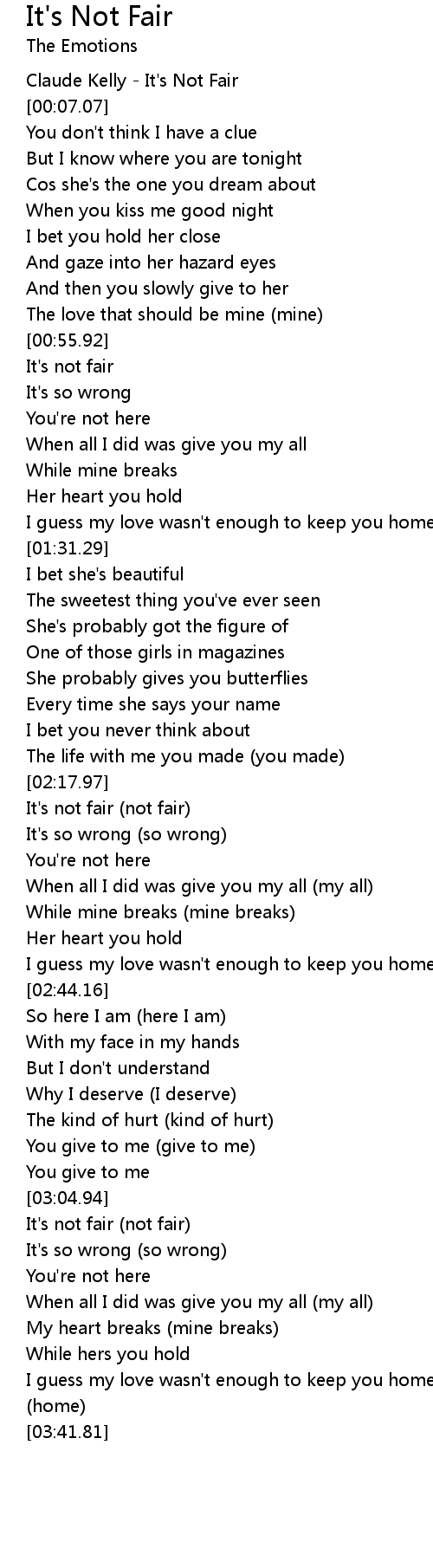 Lily Allen - Not Fair - With Lyrics, Want a video like this? Read the profile! . We Have got 7 images about Not Fair Lyrics images, photos, pictures, backgrounds, and more. In such page, we additionally have number of images out there. Such as png, jpg, animated gifs, pic art, symbol, blackandwhite, pics, etc. "The Kid LAROI - Not Fair (Feat. Corbin) Official Video", Official video for "Not Fair" by The Kid LAROI featuring Corbin. Listen & Download 'F*CK LOVE' out now: . "Lily Allen - Not Fair Lyrics", Lily Allen - Not Fair Oh he treats me with respect he says he loves me all the time he calls me fifteen times a day he likes to make ..